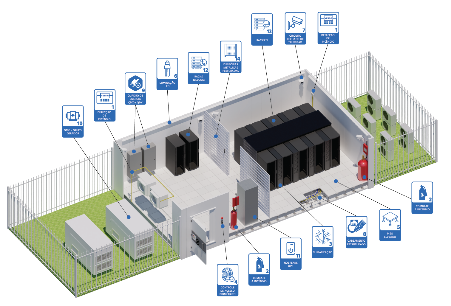 Contamos com uma equipe altamente especializada, apta a comercializar ambientes seguros, salas seguras e containers para Datacenters, atuando com o que há de mais moderno em sistemas para proteção de ativos, que unem à tecnologia aos materiais de mais alta resistência, da eletroeletrônica ao acesso digital.
